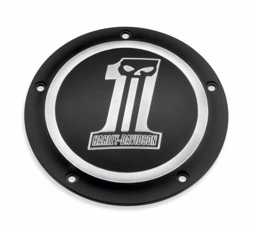 Das berühmte Harley-Davidson #1 Logo mit einem finsteren Einschlag ziert diesen Kupplungsdeckel (Derby Cover) für Touring & Trike ab 16 & schmale Primärcover.