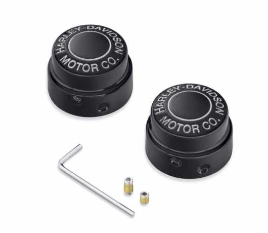 Zur stilvollen Abdeckung der Vorderachse. Diese Achsmutt-erkappen mit schwarzglänzender Oberfläche, verziert mit einem tief eingeschnittenen, silbern gefüllten Schriftzug “Harley-Davidson® Motor Co.”, geben einem klassischen Stil eine aggressive Note. Die Kappen sehen besonders gut mit seidenmatten Gabelgleitrohren aus dem Original- oder Zubehörprogramm aus. Auch bei einer tiefschwarzen Front- oder Heckpartie können sie das Tüpfelchen auf dem i bilden.