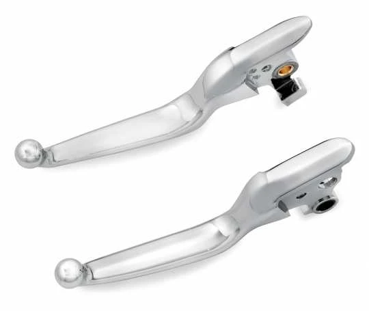 Das Custom-Finish der gegossenen Aluminiumhebel passt perfekt zum Look der verchromten Lenkerausstattung aus dem Zubehörprogramm