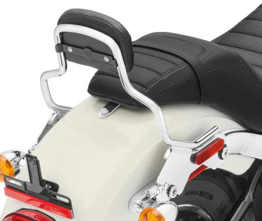 Wenn Sie Ihr Motorrad zu einer Tourenmaschine umgestalten möchten, entscheiden Sie sich zunächst für eine Sissy Bar und ein Soziusrückenpolster. Die Rückenlehne bietet dem Sozius auf Langstrecken eine bequeme Sitzposition und das Gefühl von mehr Sicherheit. Die einteiligen HoldFast Bügel zeichnen sich durch ein exklusives Verschluss-System aus, mit dessen Hilfe die Rückenlehne in Sekundenschnelle montiert oder entfernt werden kann, um Ihr Bike vielseitig zu gestalten.
