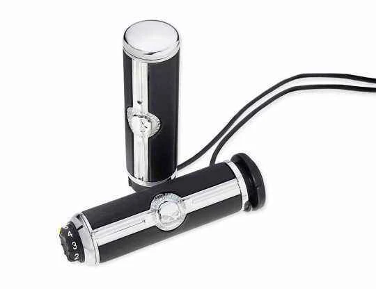 Die Stromkabel für diese Griffe müssen außerhalb des Lenkers verdrahtet werden. Achtung: 100% passgenau nur bei originalen H-D Lenkern oder Lenkern mit 22mm Innendurchmesser.