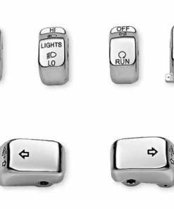 - Das Kit enthält einen kompletten Satz Chrom-Schalterkappen für die linken und rechten Lenkerschalter