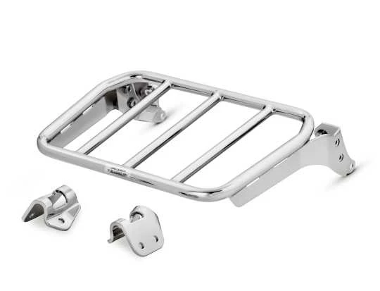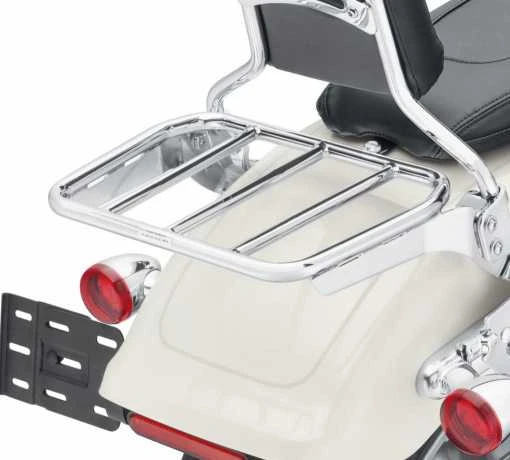 Glatte, geschwungene Kurven und die glänzende Chrom- oder glänzend schwarze Ausführung bestimmen das Aussehen dieses Sportgepäckträgers. Dieser elegante Gepäckträger wurde als Ergänzung zu den kurzen und normal hohen HoldFast Sissy Bar Uprights entwickelt und verleiht dem Motorrad eine praktische und stilvolle Note.