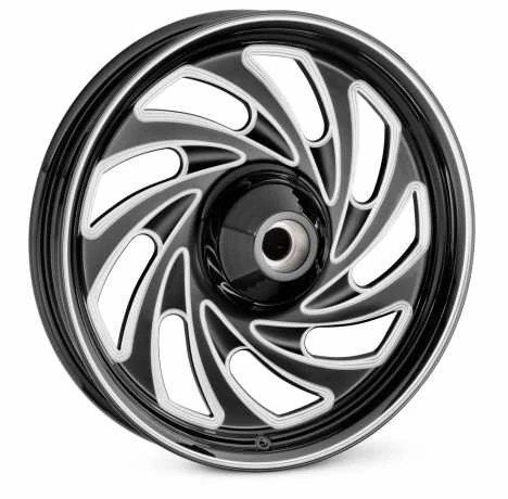 Ein wahrer Sturm zieht auf. Neun gebogene Speichen wirbeln von der Nabe nach außen und bieten selbst im Stillstand noch einen rasanten Eindruck von Geschwindigkeit.