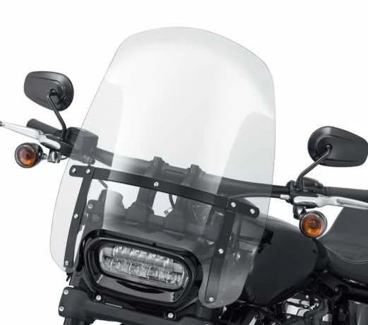 Das Wind Splitter Windschild von Harley-Davidson bietet einen großen, komfortablen Einfluss auf Fahrer und Beifahrer und hält Insekten und Kälte fern. Durch die Umleitung des Luftdrucks and der Brust und über dem Helm, reduziert die Scheibe ermüdende Belastungen auf Hals und Arme.