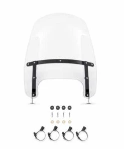 - 19″ (zirka 48,3 cm) klares Windschild mit schwarzen Schellen und Klemmen