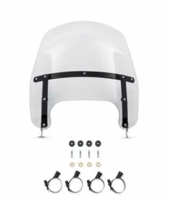 - 15″ (zirka 38 cm) leicht getönte Windschutzscheibe mit schwarzen Klammern und Schellen