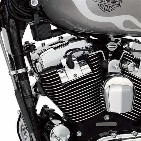 Diese exklusive Abdeckung bedeckt die Zylinderkopfschrauben und das Zündkerzenkabel mit einem Hauch von Chrom und einem gravierten Bar & Shield-Emblem.